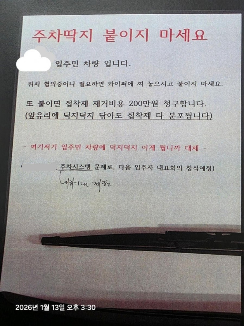 잡담 주차딱지 붙이면 제거비 2백 청구한다는 입주민.jpg
