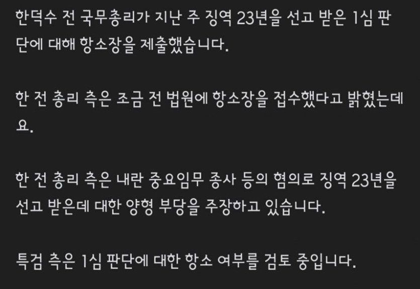한덕수, '내란' 징역 23년 1심에 항소 - 토카데미