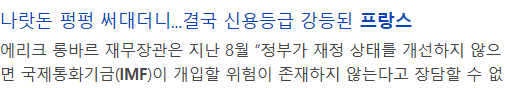 프랑스 신용등급 AAA>AA->A+ 강등. IMF구제 논의중