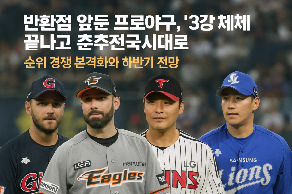 2025시즌 KBO 리그가 반환점을 앞두고 순위권이 아수라장이 됐습니다. 시즌 초반 ‘1강·2강·3강’ 구도였던 LG 트윈스, 한화 이글스, 롯데 자이언츠의 체제가 사라지고, 지금은 중심 없이 모든 팀이 혼전 양상을 보입니다.