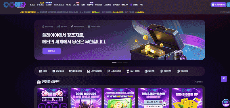 메타벳(META BET)은 2025년 현재, 아시아권 카지노 시장에서 빠르게 성장 중인 플랫폼으로 평가된다. 이 브랜드의 핵심은 ‘무제한 리워드 구조’다. 단순히 보너스 지급에 그치지 않고, 낙첨 및 콤프 시스템을 중심으로 이용자 보상 생태계를 구축했다. 특히 카지노와 스포츠, 미니게임, 슬롯, e스포츠를 통합 운영하며, 사용자 경험(UX)과 보상 체계를 하나의 구조 안에 연결한 점이 특징이다.
