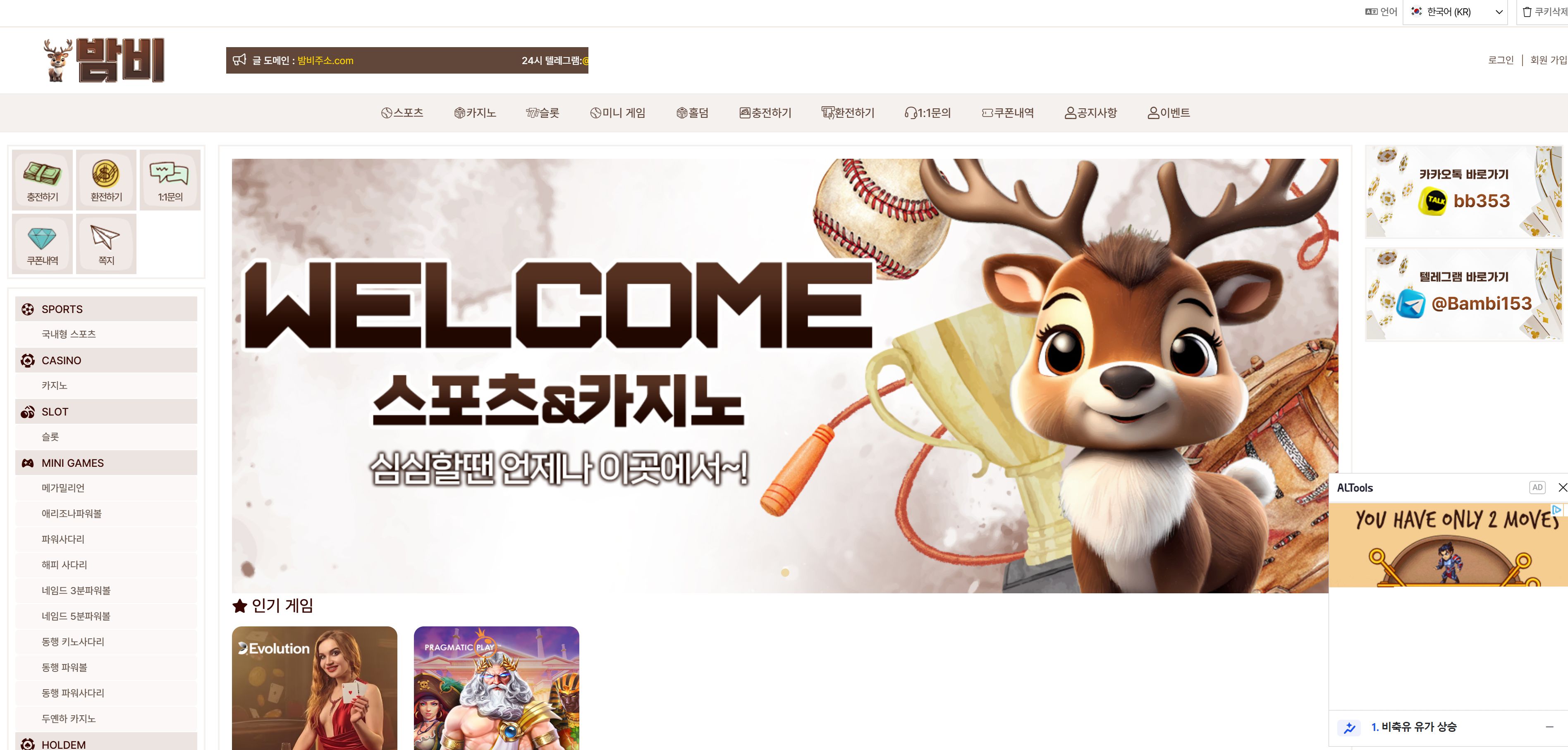 | 보너스 | 신규 가입 및 충전 시 지급되는 각종 현금성, 게임머니 보너스 |