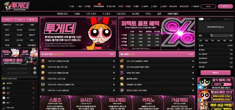 동일 장르 서비스와 비교하면, 투게더카지노는 다크+핫핑크 톤의 명확한 시각 정체성과 시즌형 스페셜(야구 3종), 콤프/페이백 같이 등급형 보상 구조가 두드러집니다. 차별성은 이벤트 가시성과 상담 진입의 단순화에서, 과제는 조건표 해석의 명확화와 정산 대기 구간 안내의 세분화에서 찾을 수 있습니다.