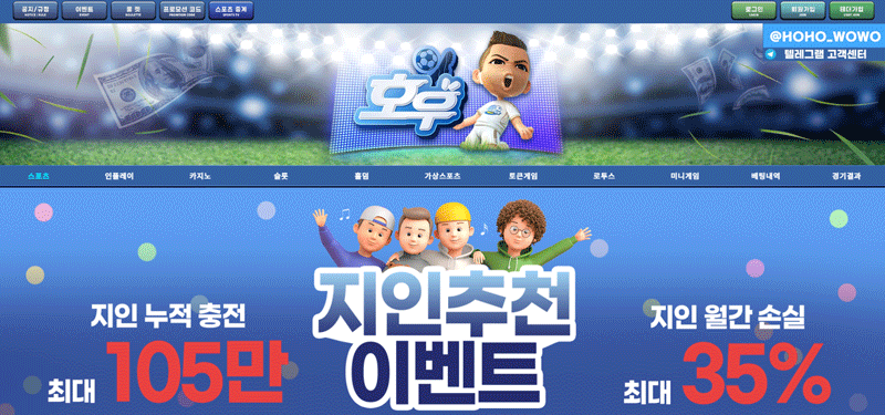 고객센터는 텔레그램(@HOHO_WOWO) 채널과 사이트 내 실시간 상담을 통해 대응하며, 일반적으로 빠른 응답을 제공하지만 특정 시간대에는 지연 보고가 있습니다. 전반적으로 **안정적인 응대 체계**를 갖추고 있으나, 복잡한 문의(예: 보너스 롤링 조건, 환전 규정)는 상담원의 숙련도에 따라 답변이 달라질 수 있어 사전 확인이 권장됩니다.