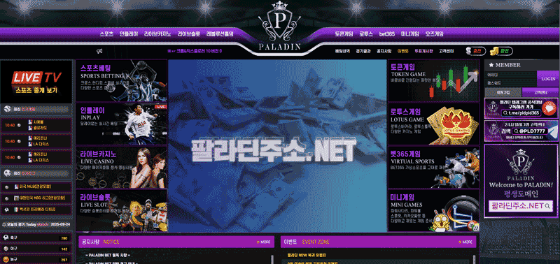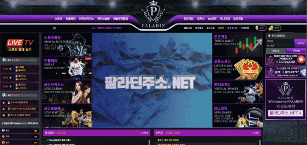 팔라딘은 스포츠·인플레이·라이브카지노·라이브슬롯·가상스포츠(벳365 연동)까지 한 화면에서 전개하는 종합형 플랫폼이다. 공지/규정과 이벤트 존이 상단에서 바로 노출되어 초기 진입 동선이 단순하며, 텔레그램 공지 채널과 평생도메인 안내를 병행 제공해 접속 안정성을 강조한다. 복귀·신규·레벨·출석·지인추천 등 이용 단계별 보상 구조가 세분화되어 있고, 토큰/로투스/미니게임과 같은 부가 메뉴로 체류 시간을 늘린 것이 특징이다. 커뮤니티성 요소(월요일 기프티콘 등 경품형 참여)도 갖춰 이벤트 참여장벽을 낮춘 편이다.1. 팔라딘 카지노 개요