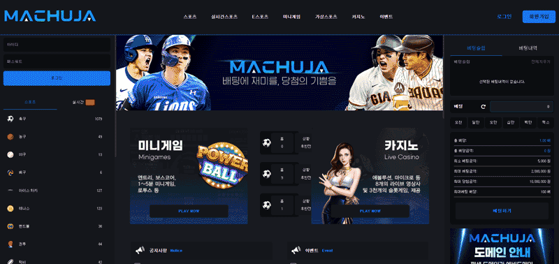 마추자는 스포츠와 카지노, 미니게임을 아우르는 종합 플랫폼으로 운영 연혁이 길고, 최근에는 다양한 프로모션으로 신규 유입을 확대하고 있습니다.