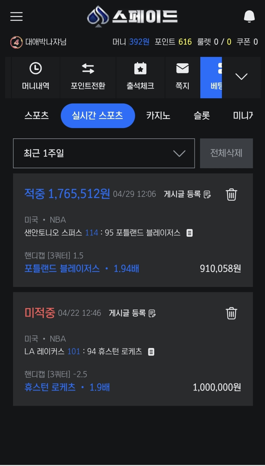 포인트 적립 및 캐시백 시스템 : 베팅 금액의 일정 비율을 포인트로 적립할 수 있으며, 누적된 포인트는 현금 또는 베팅 크레딧으로 전환이 가능합니다. 또한, 일정 손실 금액을 기준으로 자동 캐시백이 적용되어 지속적인 플레이를 지원합니다. -