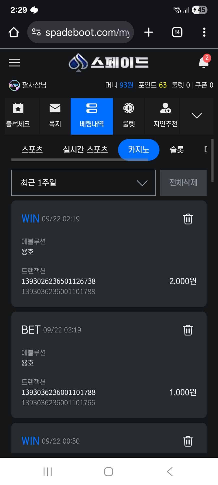 포인트 적립 및 캐시백 시스템 : 베팅 금액의 일정 비율을 포인트로 적립할 수 있으며, 누적된 포인트는 현금 또는 베팅 크레딧으로 전환이 가능합니다. 또한, 일정 손실 금액을 기준으로 자동 캐시백이 적용되어 지속적인 플레이를 지원합니다. -