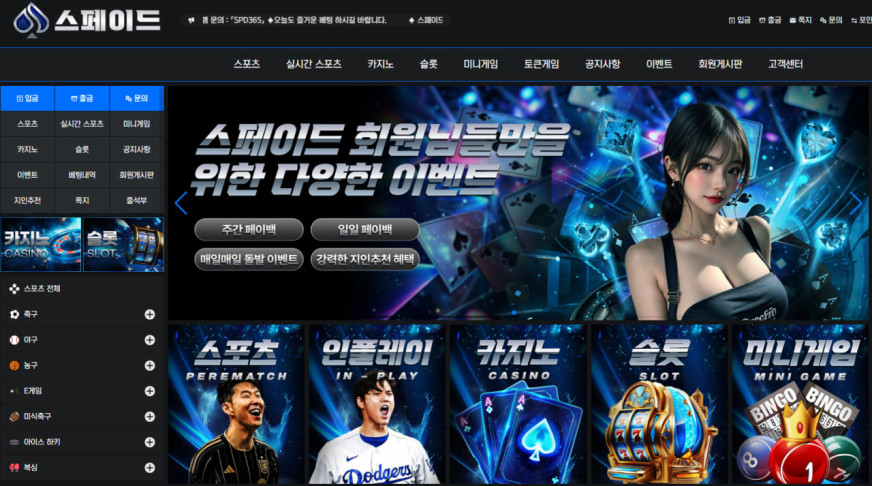 - 신규 가입 보너스, 첫 충전 보너스, 출석 이벤트, 페이백 이벤트 등 다양한 혜택이 제공됩니다. 스포츠토토와 함께 다양한 종목을 즐겨보세요.