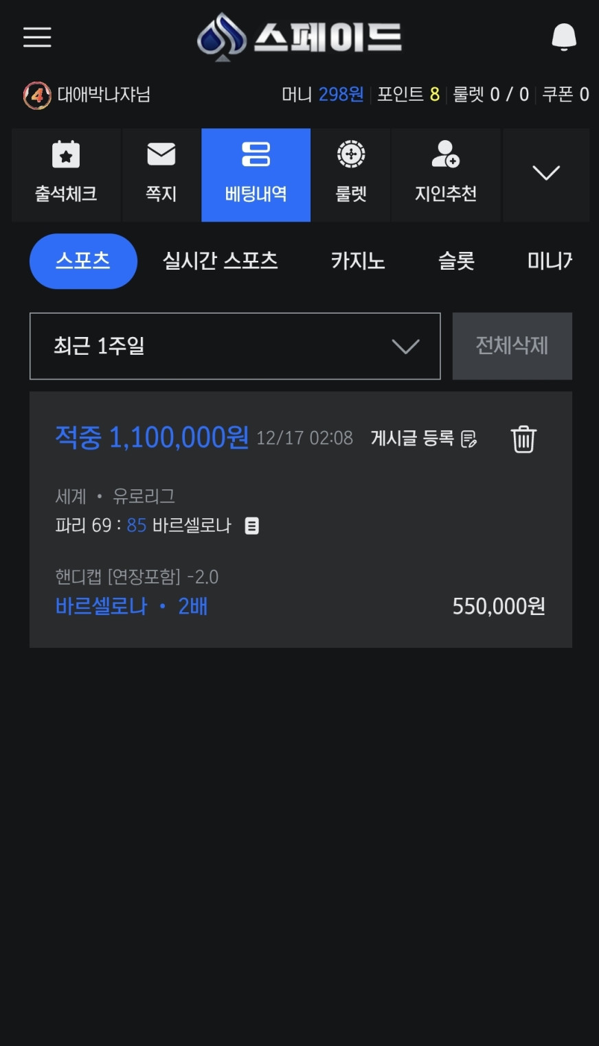 포인트 적립 및 캐시백 시스템 : 베팅 금액의 일정 비율을 포인트로 적립할 수 있으며, 누적된 포인트는 현금 또는 베팅 크레딧으로 전환이 가능합니다. 또한, 일정 손실 금액을 기준으로 자동 캐시백이 적용되어 지속적인 플레이를 지원합니다. -