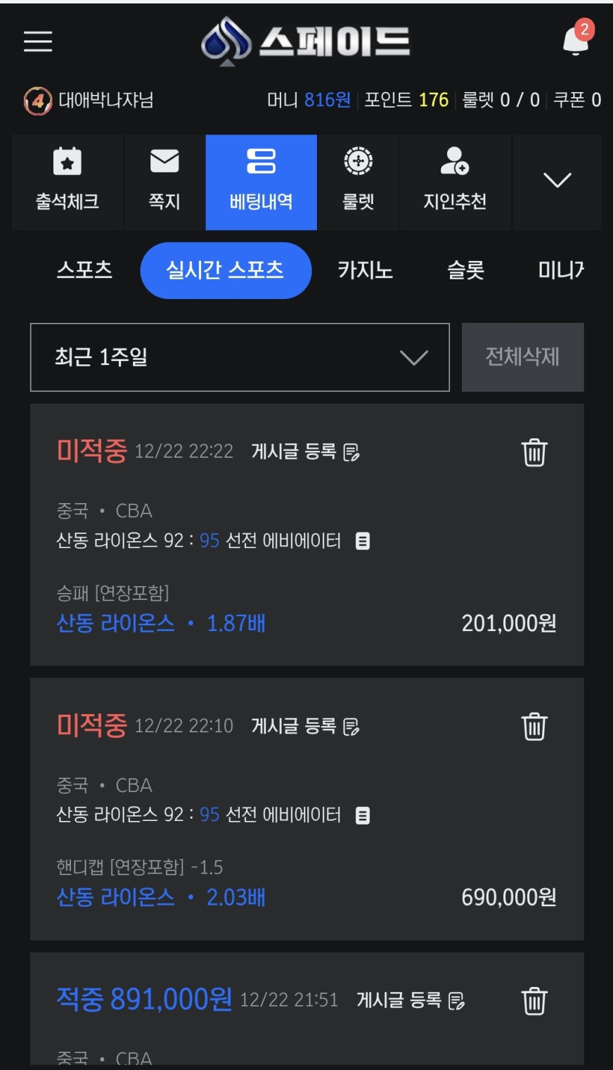 포인트 적립 및 캐시백 시스템 : 베팅 금액의 일정 비율을 포인트로 적립할 수 있으며, 누적된 포인트는 현금 또는 베팅 크레딧으로 전환이 가능합니다. 또한, 일정 손실 금액을 기준으로 자동 캐시백이 적용되어 지속적인 플레이를 지원합니다. -